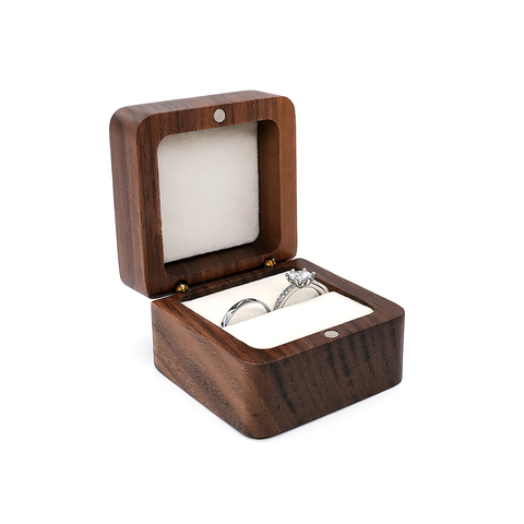 Black Walnut Wood High-End kreative Ring Box Vorschlag Hochzeit Valentinstag Paar Diamond Ring Box mit Gravur