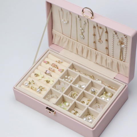 Zwei schicht ige Schmucks cha tulle mit Schloss Schmucke tui Tragbare abnehmbare Schmuck-Organizer-Box Mode-Aufbewahrung sbox