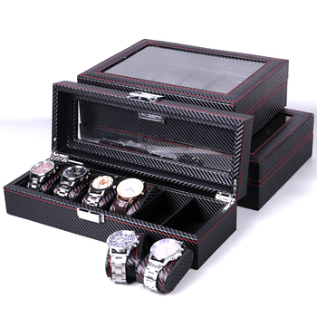 Wholesale Black Color Window Watch Jewel Display Storage Cases Handmade Leather Custom Logo